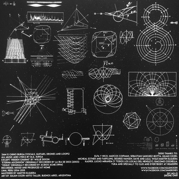 Limited to 250 copies on orange vinyl. Comes with insert. On 3AM side of insert: "Eterna Ascensión" Originally Recorded By [a732088 (2003) "Venus" Originally Recorded By Acidos Acme (1994) Recorded, Mixed And Produced At Home Lima, Peru 2014-2015 Art By Julián Ciceri-Arto Taller, Buenos Aires, Argentina DIY No-Fi Drone On!!! On Farflung side of insert: Recorded [... At Saturn Moon. Additional Tracks Recorded At EMU4 Tritium Tracklist as actually pressed. Back cover however shows reverted sides. Spelling variations on Farflung side of insert: Jettisoned In The Rushes.... Phase 2 (Dauntless), Mercure MEXS009 on spine MEXS0009 on sticker