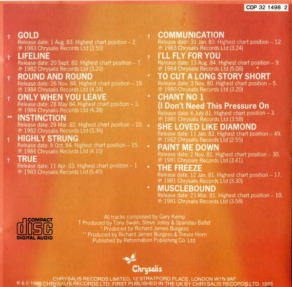 ℗ & © 1985 Chrysalis Records Ltd. First published in the UK by Chrysalis Records Ltd. 1985 (booklet)