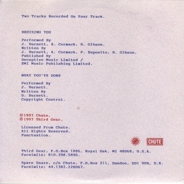 U.S. 7" available on clear or black vinyl. Features a different version of 'Bruising You' to that on the 'Mortal Wombat' 7".