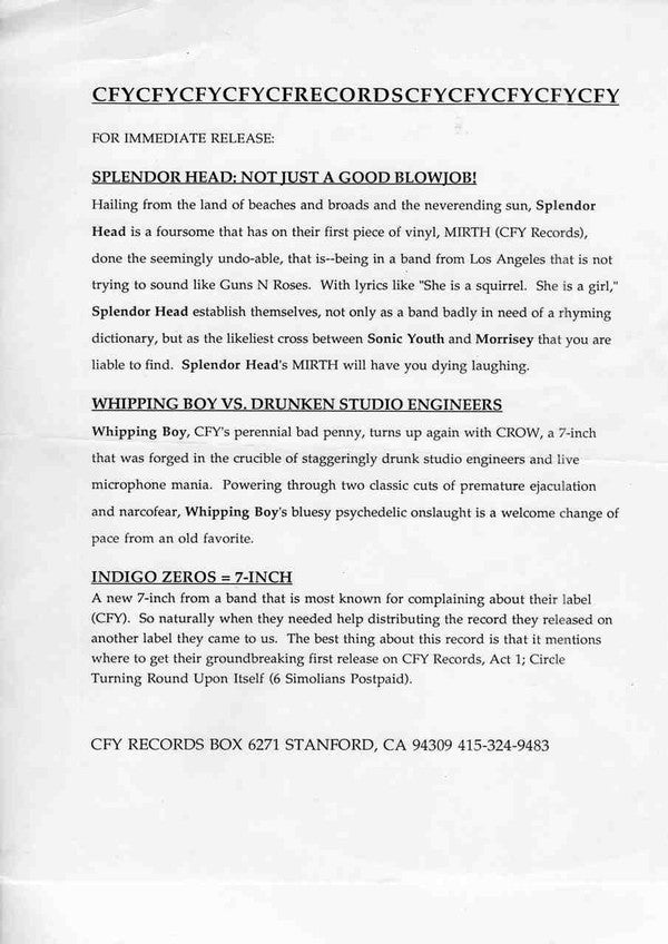 Matrix / Runout CFY- 008 - A YOU ARE THE MAN k disc S - 22771