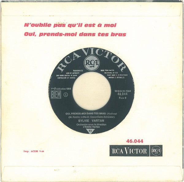 Sylvie Vartan - N'Oublie Pas Qu'Il Est À Moi / Oui, Prends-Moi Dans Tes Bras (7", Single, Mono, Jukebox, RP)