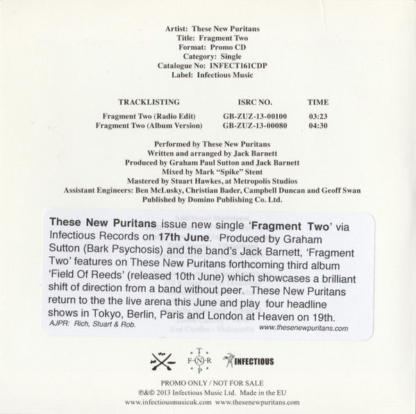 These New Puritans - Fragment Two (CD, Single, Promo)