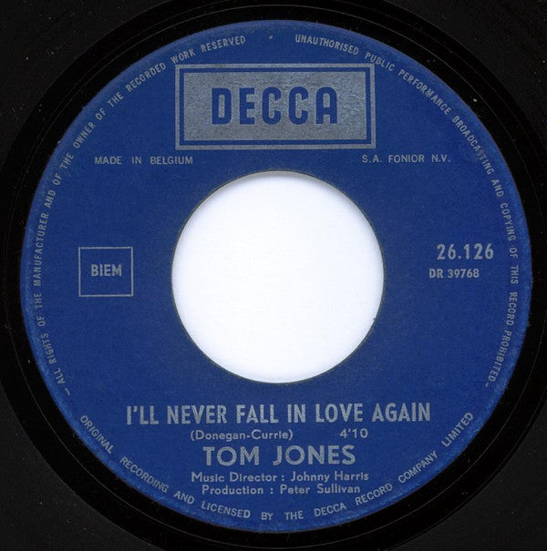 Tom Jones - I'll Never Fall In Love Again (7")