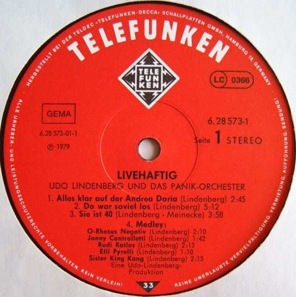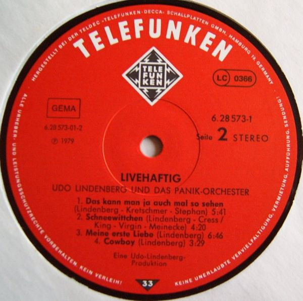 Udo Lindenberg - Livehaftig (2xLP, Album)