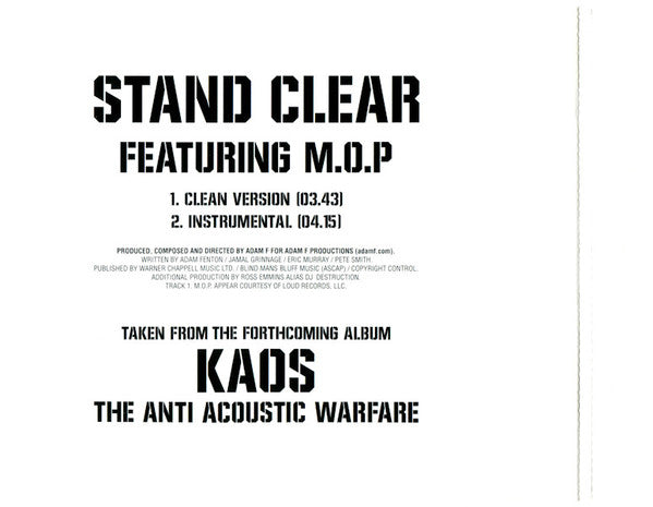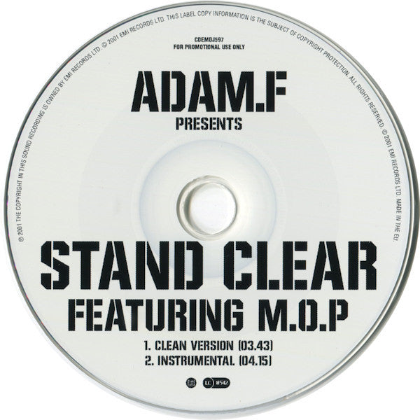 Adam F Featuring M.O.P. - Stand Clear (Clean Version) (CD, Single, Promo)