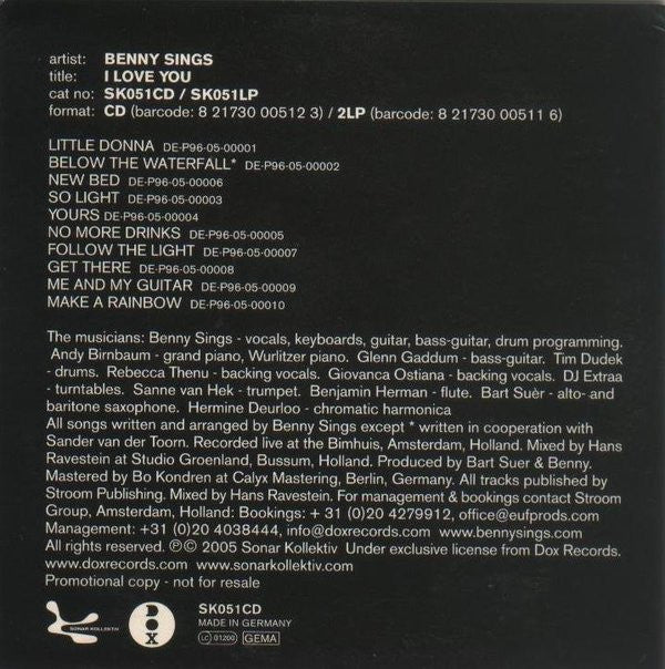 Benny Sings - I Love You (CD, Album, Promo, Car)
