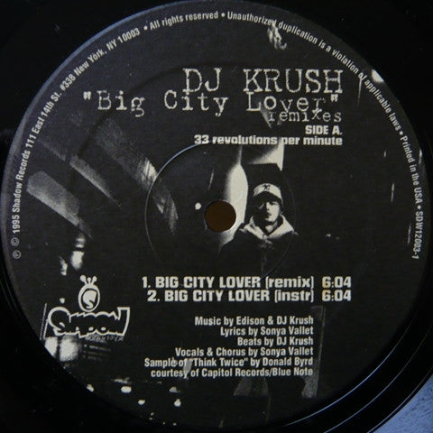 DJ Krush - Big City Lover (Exclusive U.S. Remixes) (12", Single, Bro)