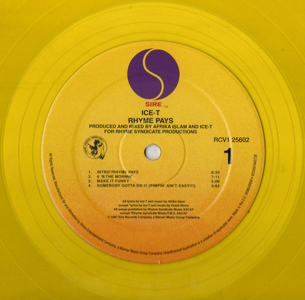 Ice-T - Rhyme Pays (LP, Album, RSD, RE, RP, Yel)