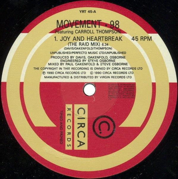 Movement. 98* Featuring Carroll Thompson - Joy And Heartbreak (12")