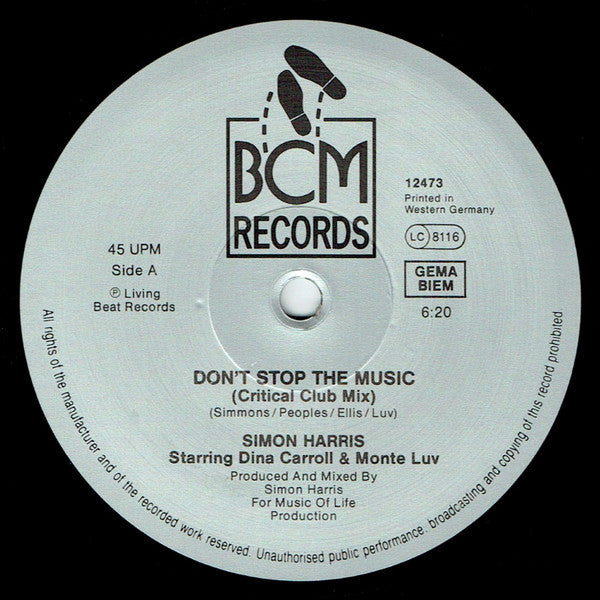 Simon Harris Starring Dina Carroll & Monte Luv - Don't Stop The Music (12")