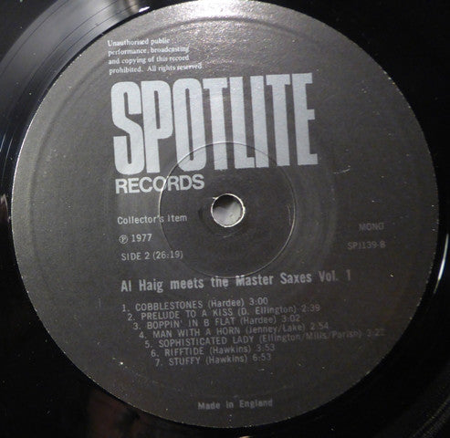 Al Haig, Coleman Hawkins, Wardell Gray, John Hardee - Al Haig Meets The Master Saxes Volume One (LP, Comp)