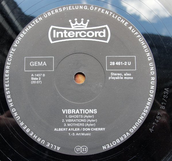 Albert Ayler And Don Cherry - Vibrations (LP, Album, RE)