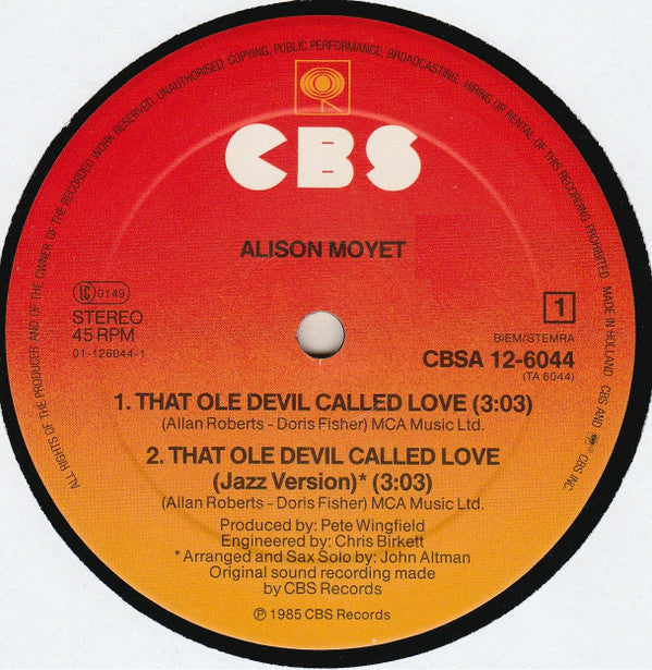 Alison Moyet - That Ole Devil Called Love (12", Maxi)