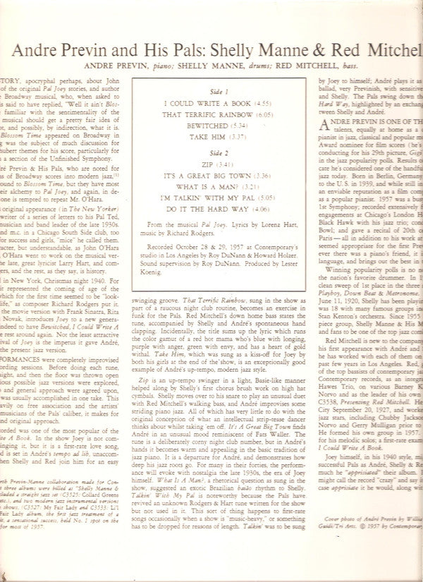 André Previn & His Pals - Modern Jazz Performances Of Songs From Pal Joey (LP, Album, RE, RM)