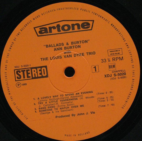 Ann Burton With Louis Van Dyke Trio - Ballads & Burton (LP, Album)