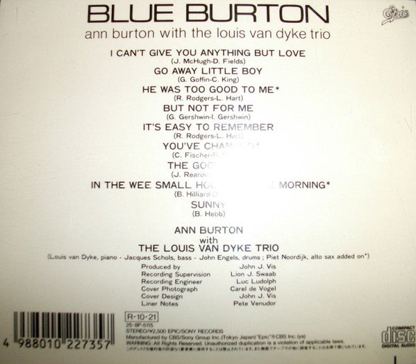 Ann Burton With Louis Van Dyke Trio - Blue Burton (CD, Album, RE)