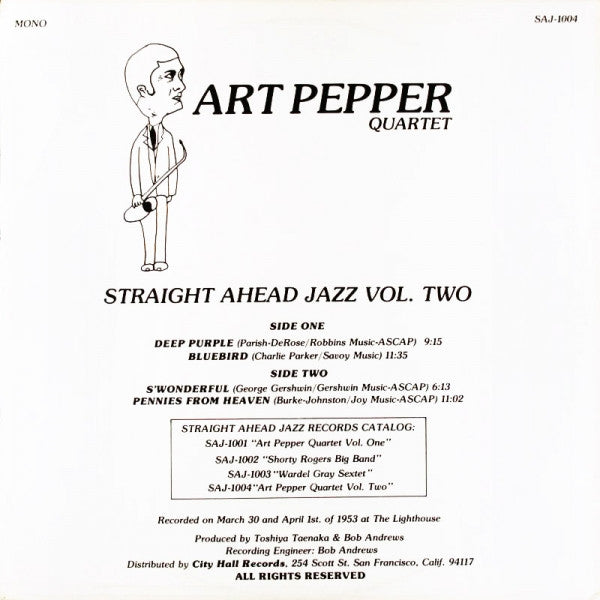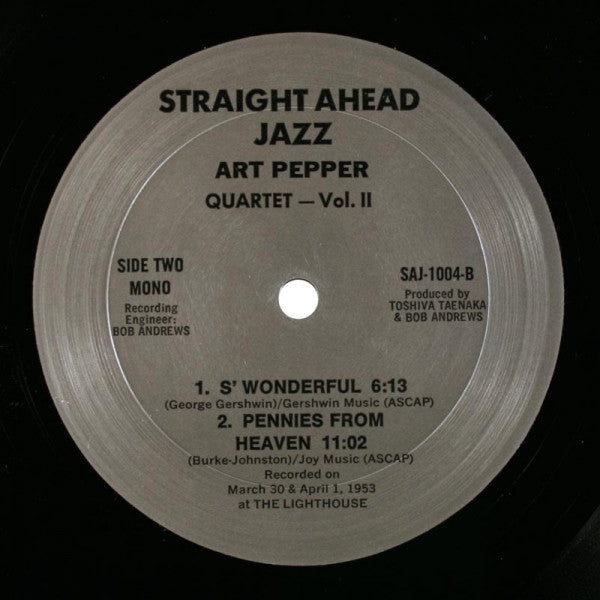 Art Pepper Quartet - Straight Ahead Jazz Vol. Two (LP, Album, Mono)