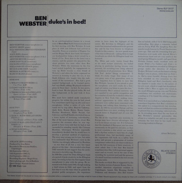 Ben Webster - Duke's In Bed! (LP, Album)
