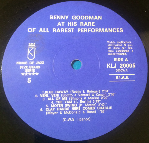Benny Goodman - Here Is Benny Goodman At His Rare Of All Rarest Performances Vol. 1 (LP, Comp)