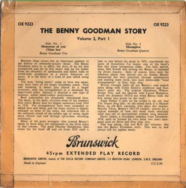 Benny Goodman Trio / The Benny Goodman Quartet - The Benny Goodman Story Volume 2 Part 1 (7", EP)