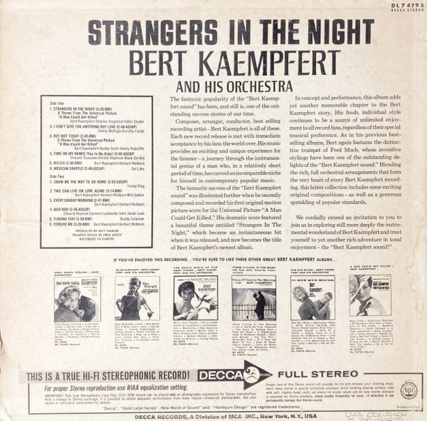 Bert Kaempfert & His Orchestra - Strangers In The Night (LP, Album, Glo)
