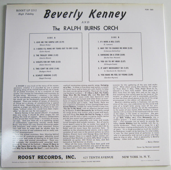Beverly Kenney With Ralph Burns And His Orchestra - Come Swing With Me (LP, Album, Mono, RE)