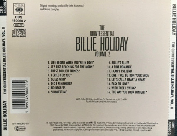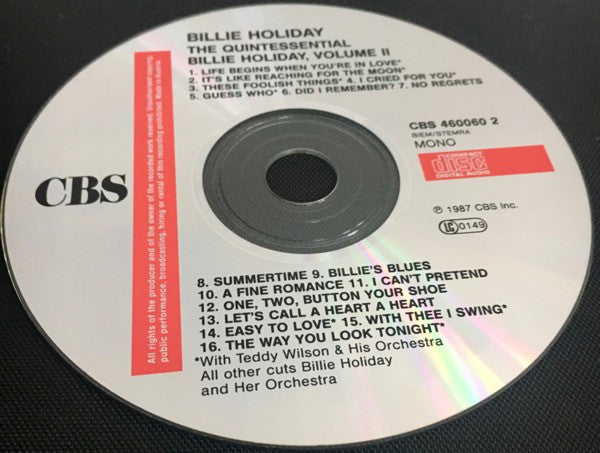 Billie Holiday - The Quintessential Billie Holiday Volume 2 (CD, Comp, Mono, RM)
