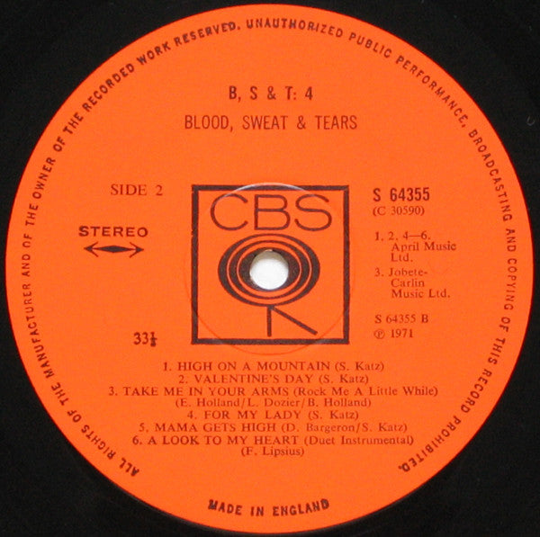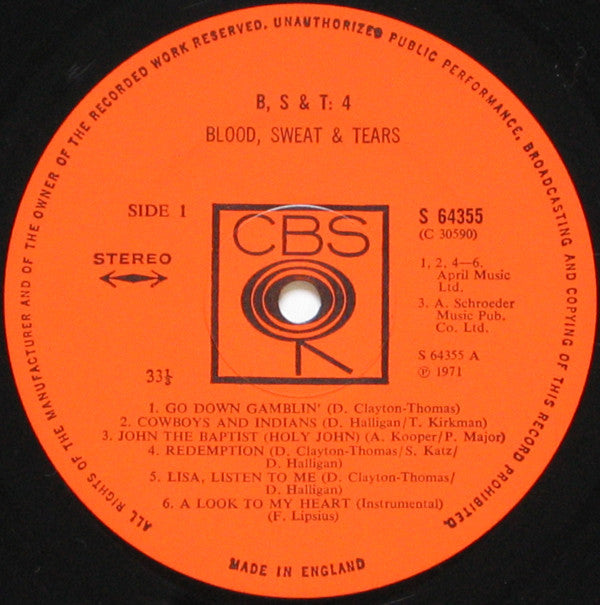 Blood, Sweat And Tears - B, S & T; 4 (LP, Album)