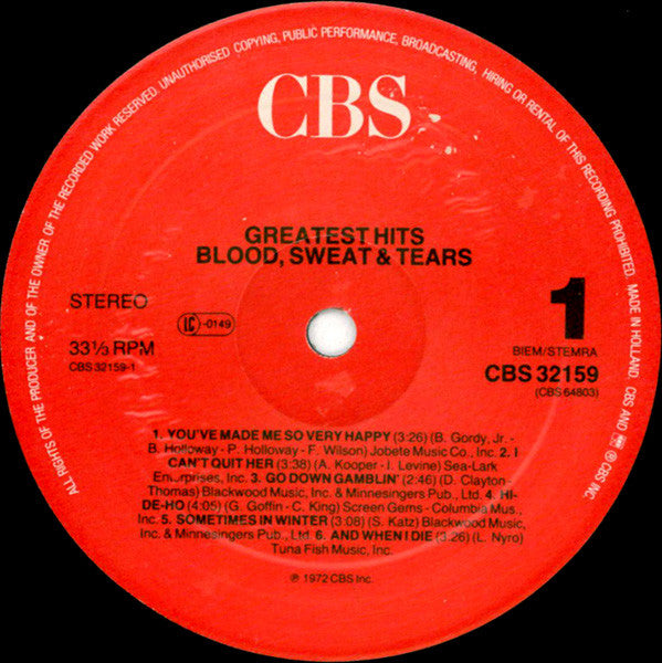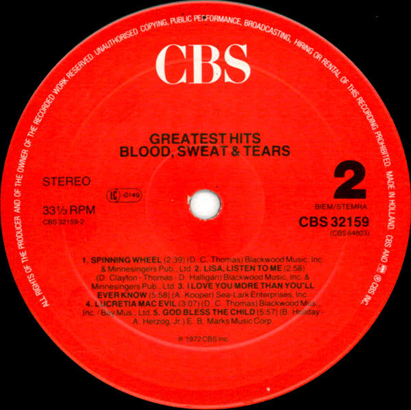 Blood, Sweat And Tears - Blood, Sweat & Tears Greatest Hits (LP, Comp, RE)