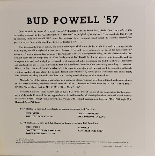 Bud Powell - Bud Powell '57 (LP, Album, Mono, RE)