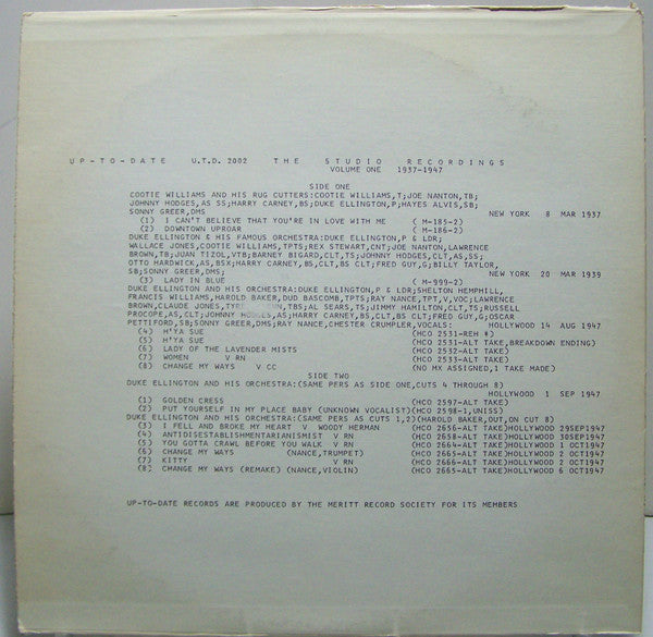 Cootie Williams & His Rug Cutters, Duke Ellington And His Orchestra - The Studio Recordings Volume One 1937-1947 (LP, Comp)