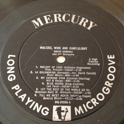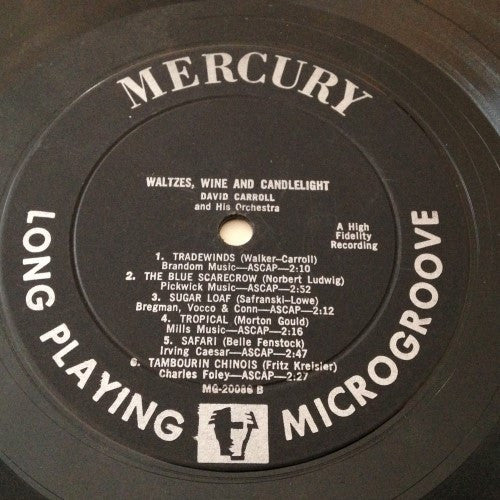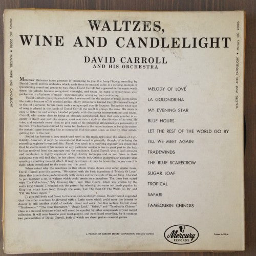 David Carroll & His Orchestra - Waltzes, Wine And Candlelight (LP, Album)