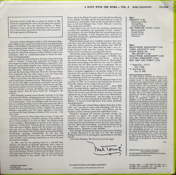 Duke Ellington And His Orchestra - A Date With The Duke Vol. 8 (LP, Mono)