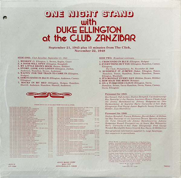 Duke Ellington - One Night Stand With Duke Ellington At The Club Zanzibar (LP, Album)