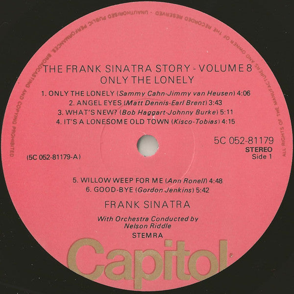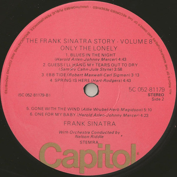 This is the RED label variant. GREEN label variant is here: [r=19986238. The 8th of ten concept album reissues in the "Frank Sinatra Story" series. EMI's Bovema company in Holland introduced its medium-price "Story Of ..." series for several artists in late 1971. This album was included in the set [r=9941180