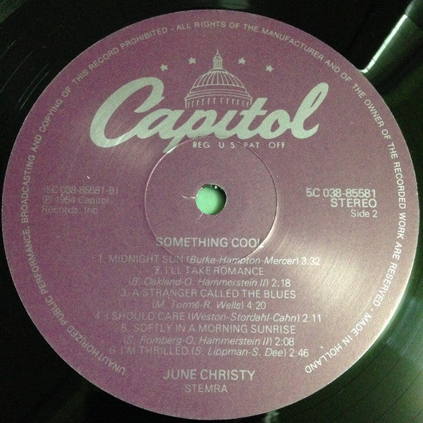 Dutch LP reissue with purple Capitol-labels. Made in Holland. ℗ 1954 Ⓒ 1960