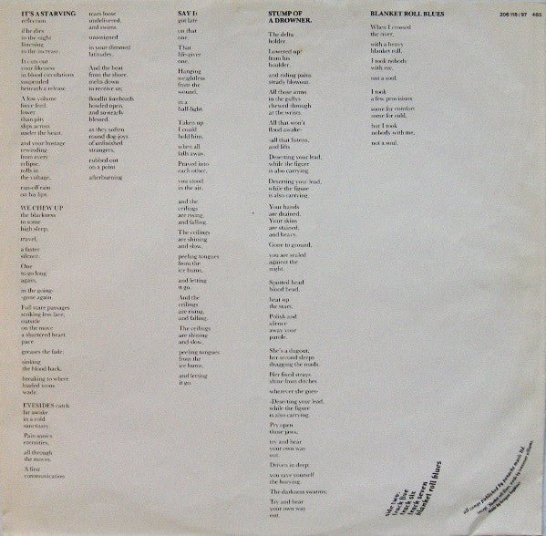 [Label ℗+© 1983 Virgin Records Ltd. [Inner sleeve All songs published by Panache Music Ltd. except B4. [Cover Composed between Aug. - Sep. 1983. Recorded at the Townhouse, EMI & Sarm West Studios, Oct. - Dec. 1983. ℗ 1983 Virgin Records Ltd © 1984 Virgin Records Ltd Printed in Western Germany by Mohndruck Graphische Betriebe GmbH, Gütersloh Imprimé en République Fédérale d'Allemagne Inner sleeve with lyrics. First pressing with price code Germany-320 unlike [r1622912 with price code Germany-270.