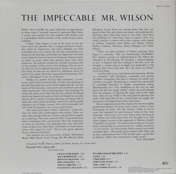 Teddy Wilson - The Impeccable Mr. Wilson (LP, Album, Mono)