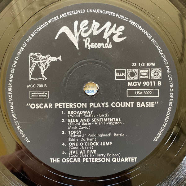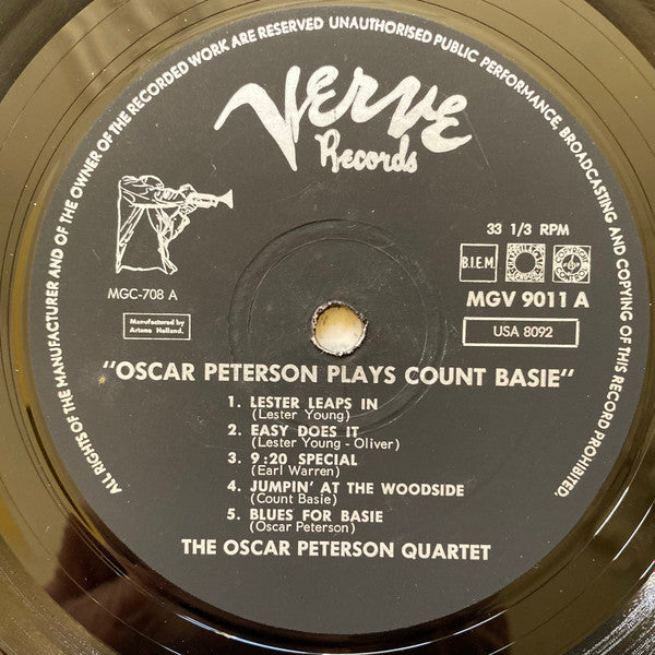 The Oscar Peterson Quartet - Oscar Peterson Plays Count Basie (LP, Album, Mono, RE)
