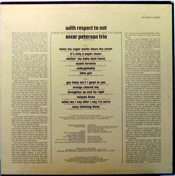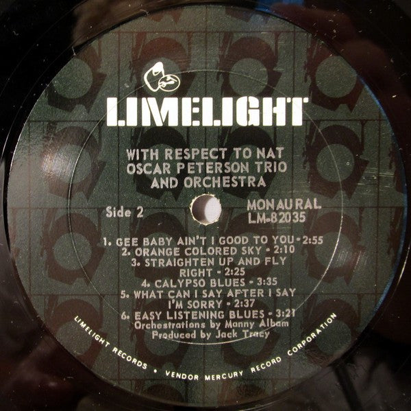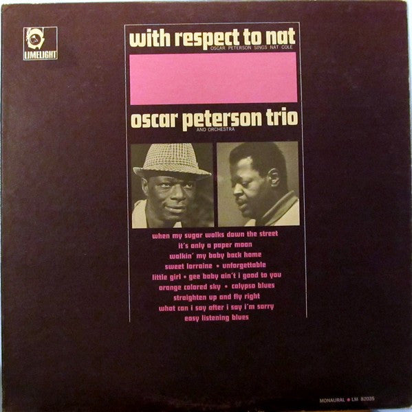 The Oscar Peterson Trio - With Respect To Nat (LP, Album, Mono, Pit)