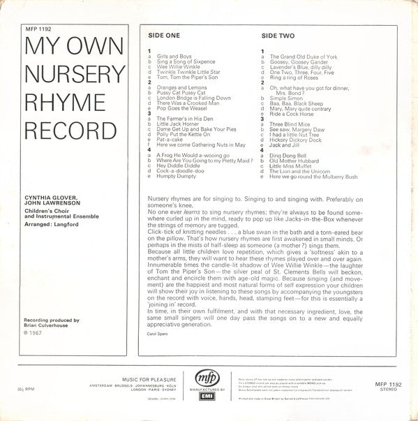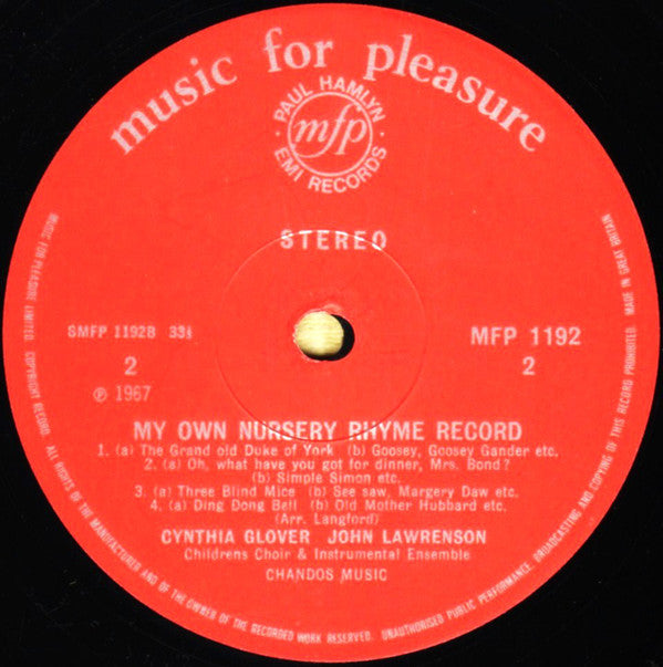 Cynthia Glover / John Lawrenson With The Children's Choir - My Own Nursery Rhyme Record (LP)