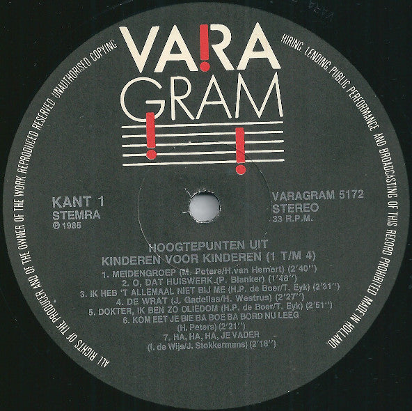 Kinderen voor Kinderen - Hoogtepunten Uit Kinderen Voor Kinderen 1 T/m 4 (LP, Comp)