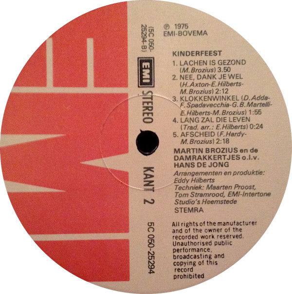 Martin Brozius En De Damrakkertjes O.l.v. Hans de Jong - Kinderfeest Met Martin Brozius En De Damrakkertjes o.l.v. Hans de Jong (LP, Album, Gat)