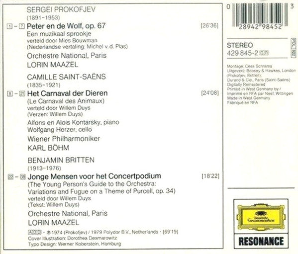 Sergei Prokofiev, Camille Saint-Saëns, Benjamin Britten - Peter En De Wolf / Het Carnaval Der Dieren / Jonge Mensen Voor Het Concertpodium (CD, Comp, RE, RM)