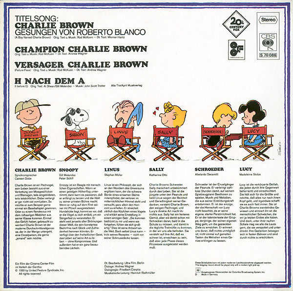 Various - Charlie Brown Und Seine Freunde (Deutscher Original-Film-Soundtrack) (LP, Album, Gat)