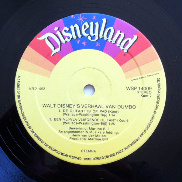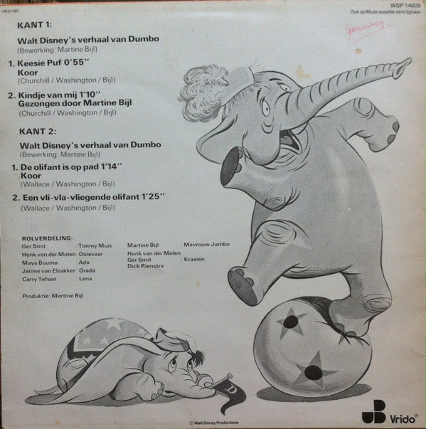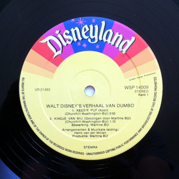 Dumbo-soundtrack in Dutch; includes the story and some songs. The songs are integrated into the story. The track-duration for the story itself is not given.