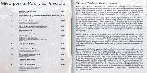 The CD contains spoken and sung texts from the Bible, the Liturgy and the Peace Message, Vatican City, from January 1, 1979 and brings together various music styles from Latin America in this mass.