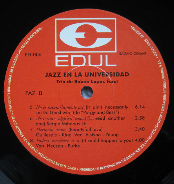 Baby López Furst Trio - Jazz En La Universidad (LP, Album, Ltd, RP, LP,)