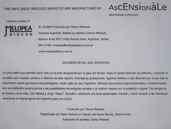Enrique Villafañe and Litto Nebbia at Discos Melopea. Liner notes by Tony Higgins..