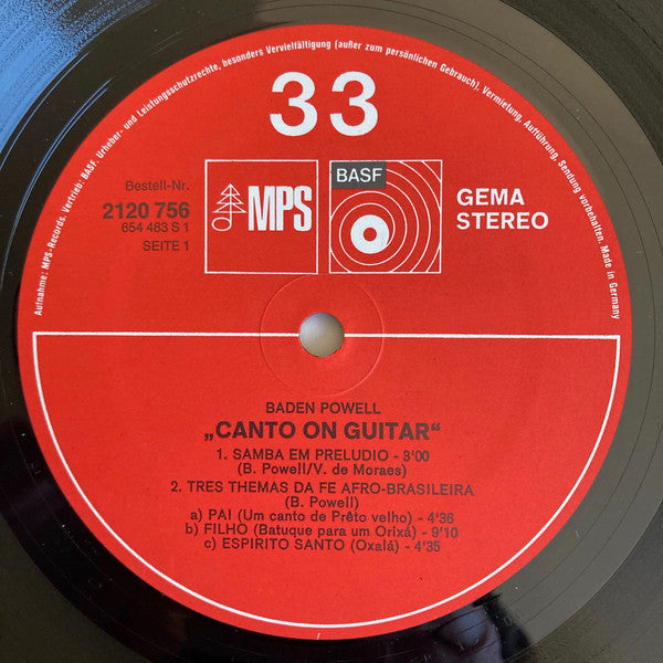 Baden Powell - Canto On Guitar (LP, Album, Gat)